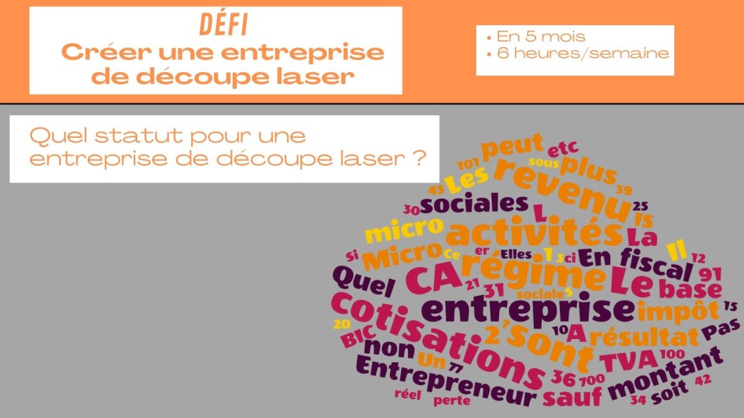 DEFI : 5 mois pour créer son entreprise,Monter sa boîte Quel statut choisir pour son entreprise ? Posté le par Maude Maude Quelle découpeuse laser choisir pour monter son entreprise ? Quels produits vendre en découpe laser ?